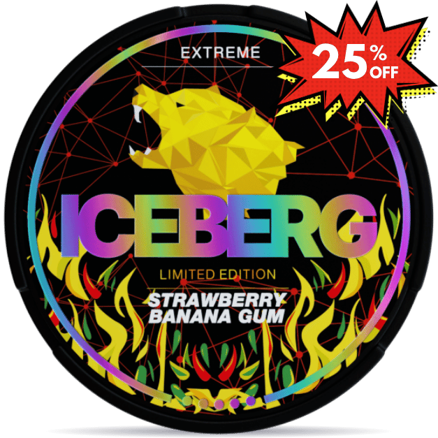 ICEBERG Strawberry Banana Gum Extreme je ideální pro uživatele, kteří milují klasické cukrovinkové příchutě a potřebují silný nikotinový zážitek. Sladká jahoda a jemný banán poskytují nostalgický impuls, který je perfektní pro každý okamžik, kdy potřebujete dávku příchuti spolu s posílením. Díky vysokému obsahu nikotinu je tento sáček skvělou volbou pro zkušené uživatele, kteří si užívají zábavné, ovocné příchutě.